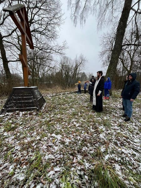 - Молебное пение у памятного креста в д. Синево на месте разрушенного храма